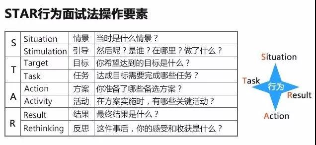 在设计面试问题的时候,怎样快速高效地掌握应聘者信息,相比于问一些你是哪里人、是否有男友等无营养问题,STAR面试往往更加快速准确,分别从当时情景,你的目的,你的方案,结果如何等四个方面展开,能更合理地判断一个应聘者的能力。