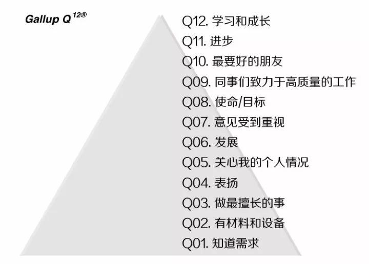 Q12是一种非常好的留人方法。无论是新员工还是老员工,都让他对材料需求、擅长事情、是否被公司重视等12个问题进行打分,从而总结出普遍不足现象并加以改进,从而提高满意度。