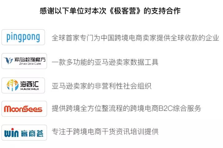 以上内容来自由易仓科技、紫鸟数据魔方、海西汇联合主办的第十五期《极客营》,同时也感谢老狼、王小佳、陈凯斌等跨境大咖的无私分享,感谢PingPong的赞助支持。