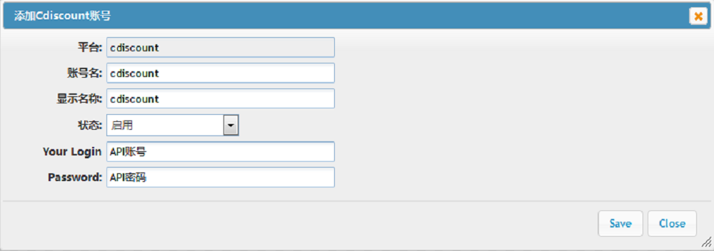 Cdiscount令牌:API密码,第一次设置API密码必须找客户经理,以后可以自己修改API密码(修改密码前,需禁用erp对应的账号,否则修改密码可能无效)