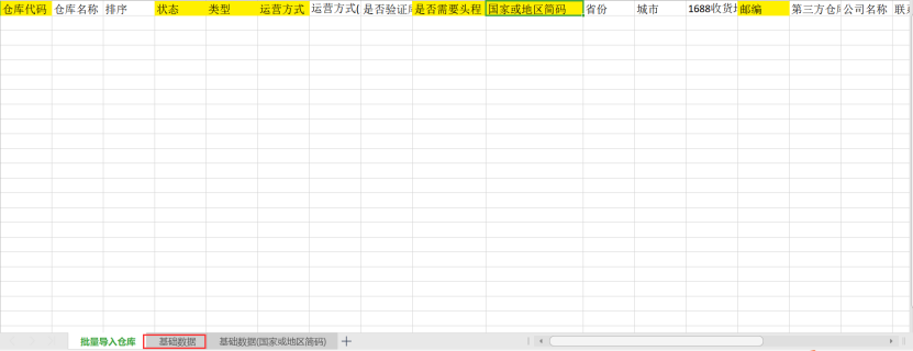 7、国家简码:仓库所在国家的简码。国家简码数据在批量上传仓库工作表的SHEET3。必填。