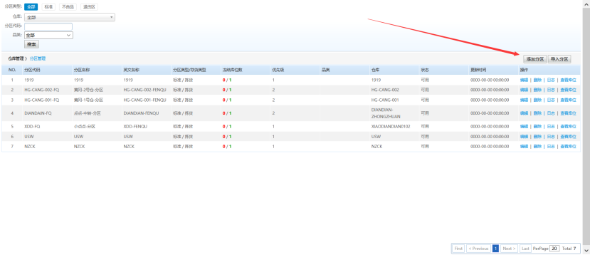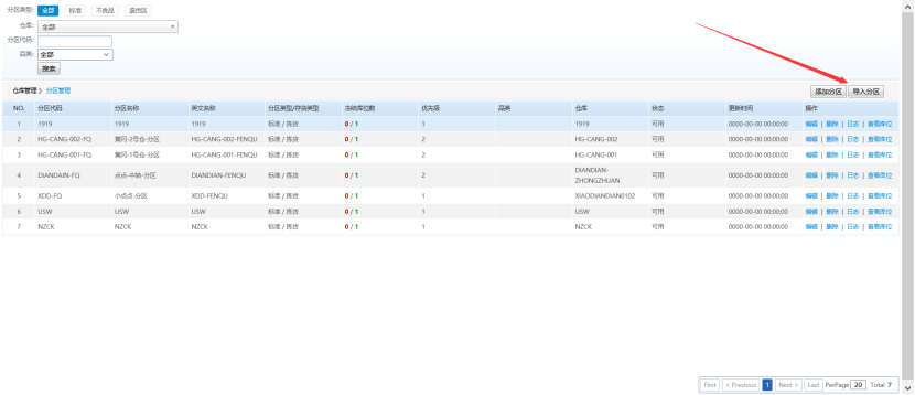 1、分区代码:仓库之中每一个分区的代码,自定义编写,以实际情况以及工作人员便于辨识为准,支持数字和英文字母。必填。