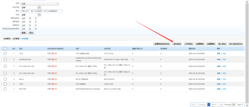 路径:应用-》仓储-》仓库管理-》库区维护-》库位管理