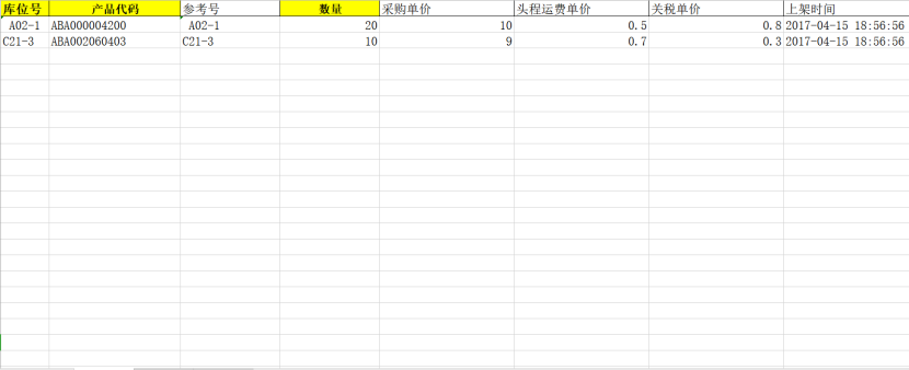 注:导入成功后,系统内产生批次库存,库存查询内可查看对应SKU新增的库存批次。