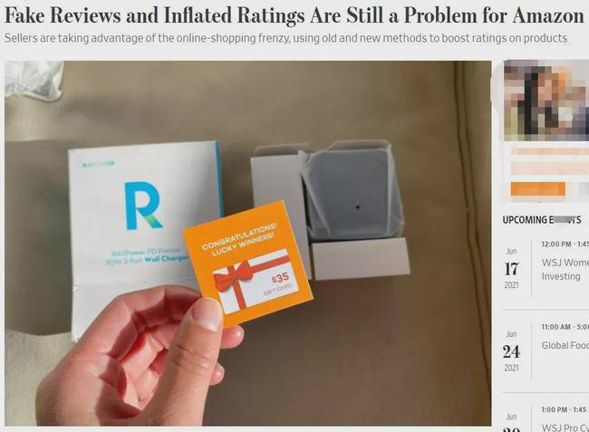 另一方面则是华尔街日报等社会媒体关于礼品卡、虚假评论的报道,形成了舆论监督作用,加大了亚马逊严格监管评论的整治力度。