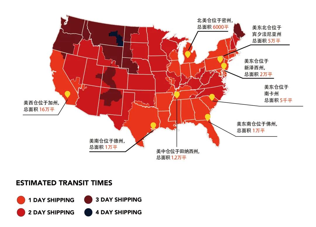 120万尺全新仓库为国内海外仓单体最大仓库,库容充足;同时作为FedEx,UPS等当地配送商的战略合作伙伴,CA新仓运力非常稳定,邻近日处理百万包裹级的Fedex Hub,绝对保障旺季运力的需求,满足48小时的出库时效。